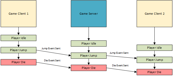In a basic game architecture, some client or server sends an event destined for one or more players, and when this event arrives the server or player will execute some action.